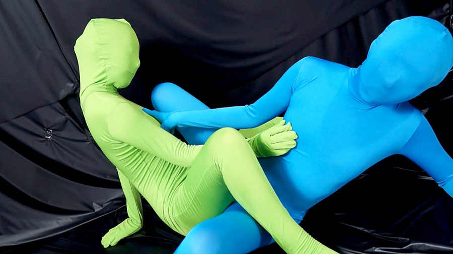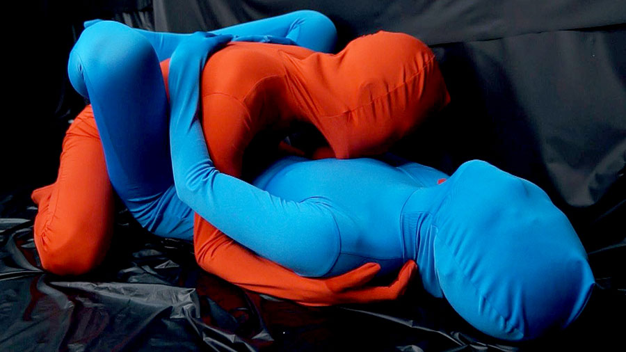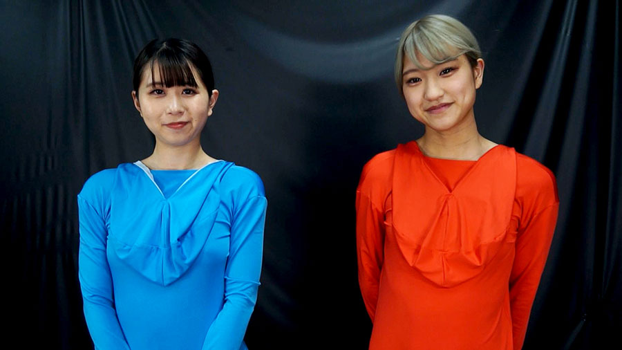 1組目はそんな可愛い二人が赤と青のゼンタイを着用し弄り合います。