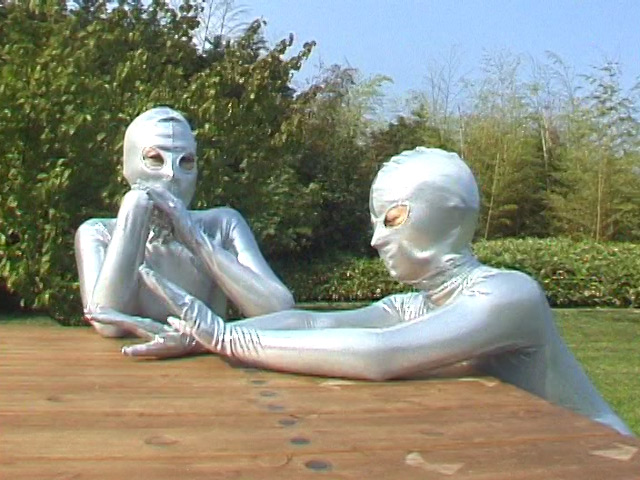 銀色の全身タイツに身を包む「シルバー星人」なる二人が、白昼堂々野外でお散歩、秘密の会話をした後、オナニー、レズそして3Pまで楽しむ、という何ともトリッキーな設定の作品ですw